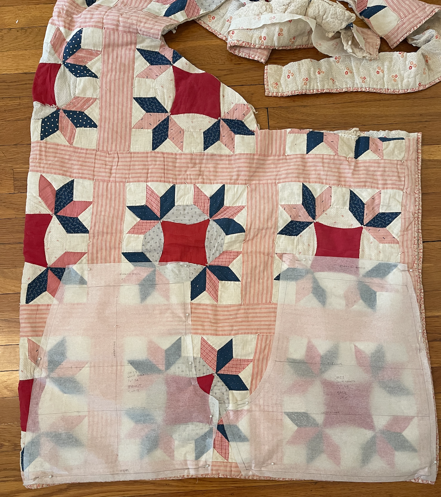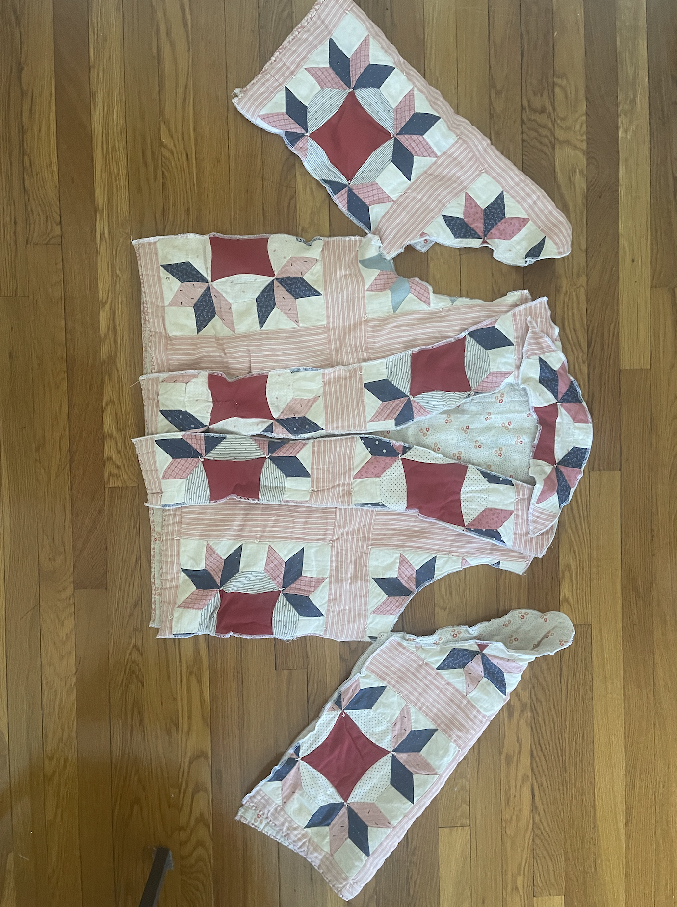 Coat and matching shorts made out of a vintage quilt found in a thrift store in Wellfleet, MA.