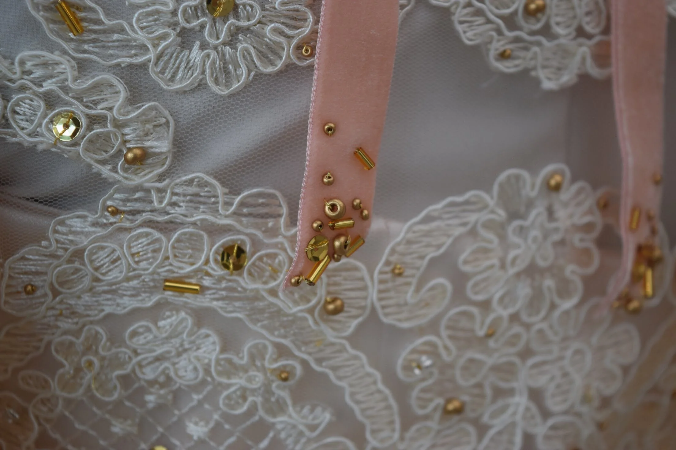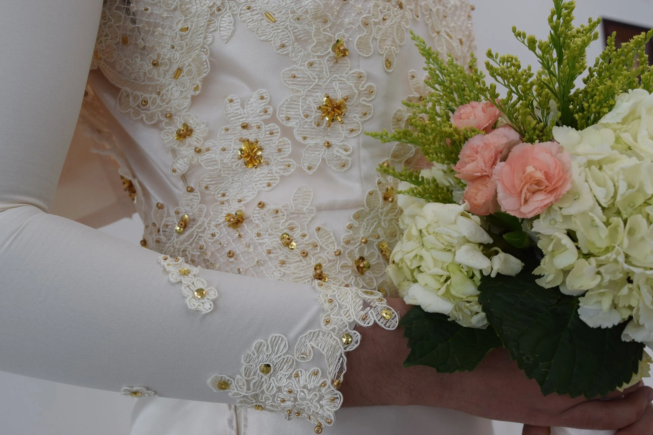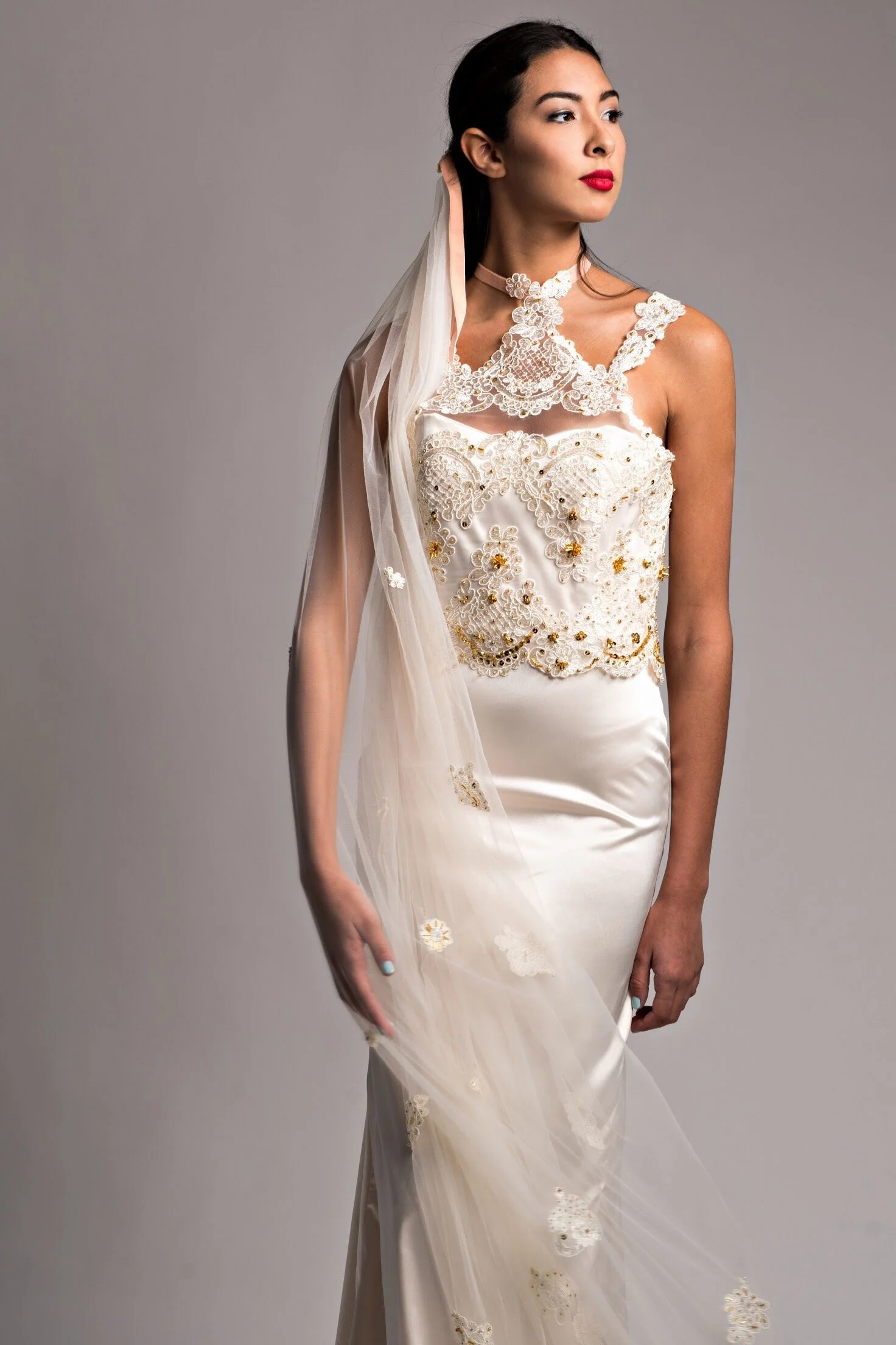 In the beginning I did not set out to create a modest gown. As I was finishing up sewing this look I knew I wanted Z to model it for me. It was just a feeling in my gut that she was the one who was meant to wear it. However, it came with a set of challenges. How do I make it modest? I think that most design houses are intimidated by the idea of creating modest looks. Which leads to lack of diversity not only on the runway but In our magazines, in stores, and in clothing options for hijab wearing women. When I told my professor that I would need to create a hijab and body suit to be worn under the dress and bodice he gave me a funny look. A look that I knew meant “why are you putting extra work on yourself at this point in the semester?” But that’s the exact problem with the fashion industry. I learned throughout this process that it’s not a challenge and it’s not “extra work”. This look took about 30 hours of hand beading and is completed with 4 pieces that make up the assembled garment.