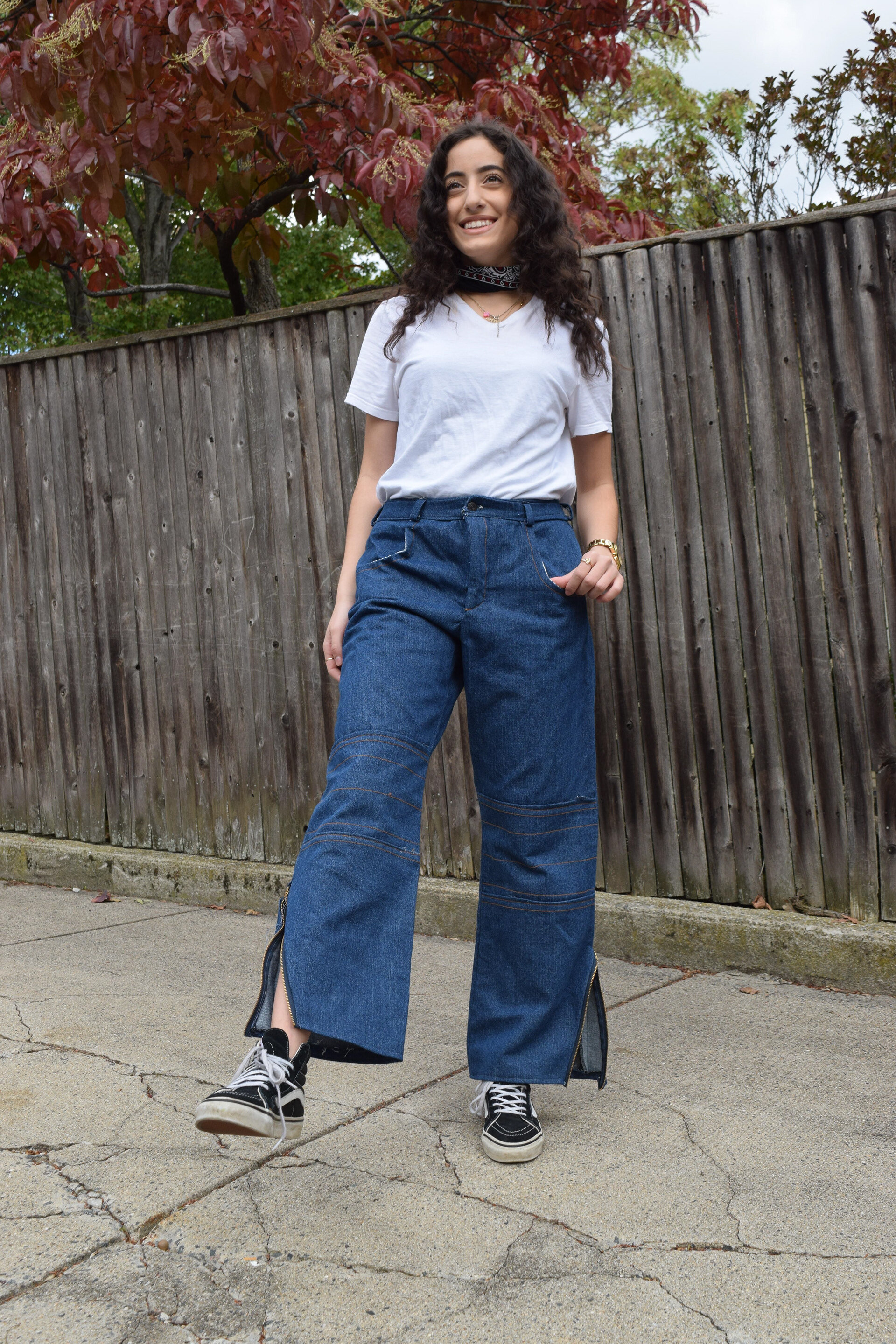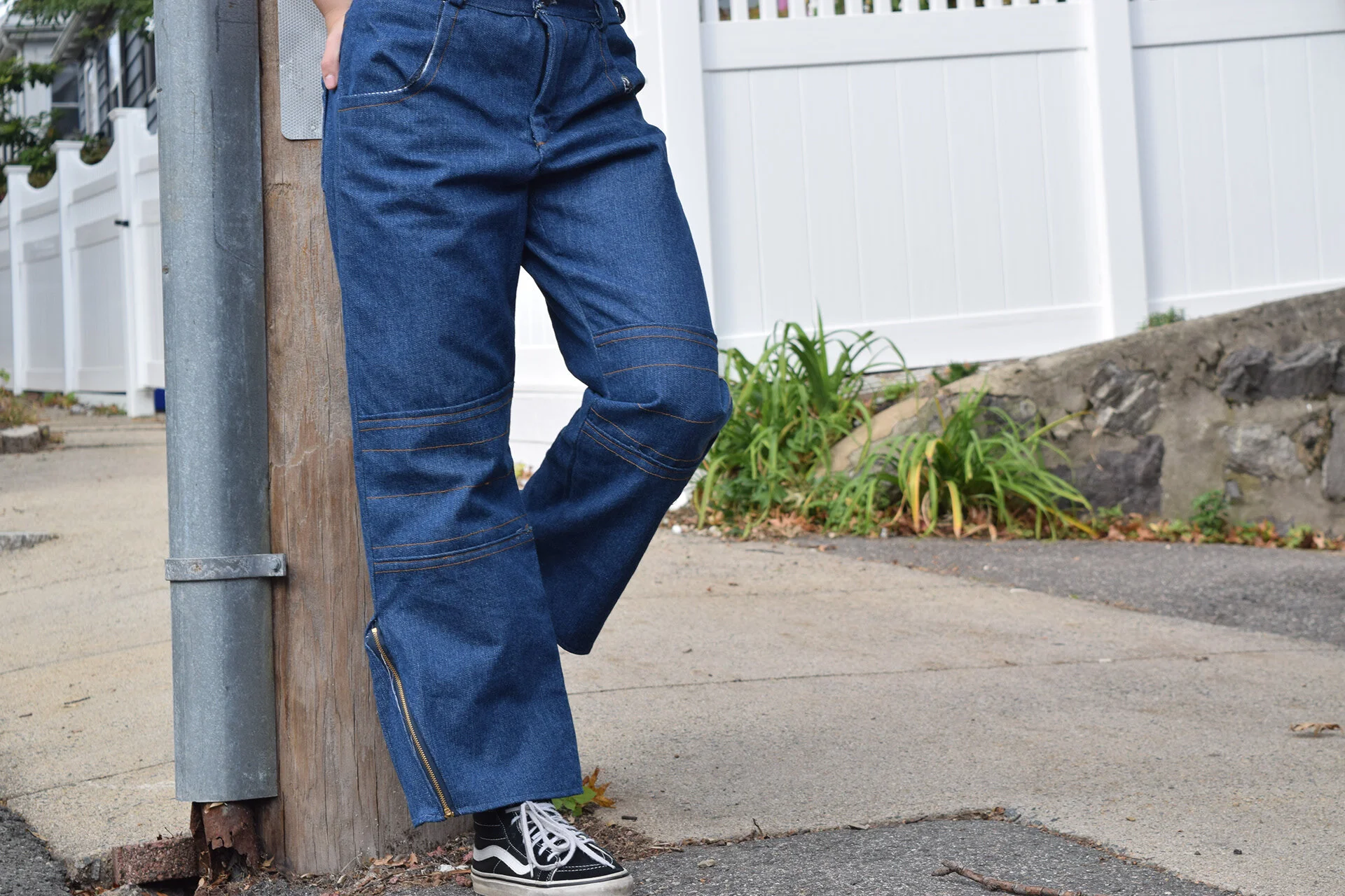 Fashion flats done in Adobe Illustrator. 100% denim and cotton fabric (inside pockets) with knee patches, zipper details, and topstitching.