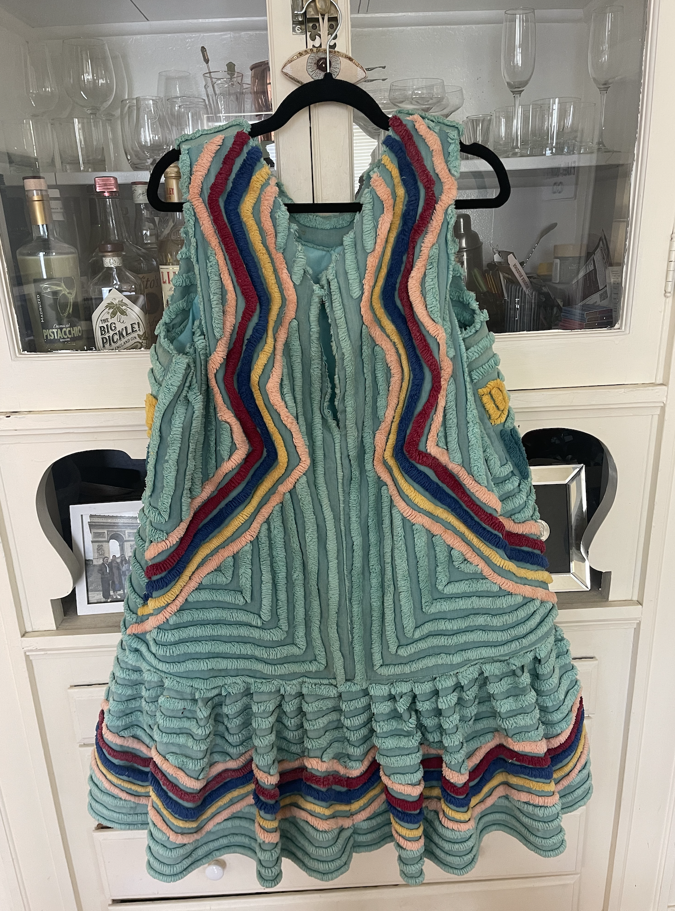 Dress made out of a vintage chenille blanket found at a yard sale.